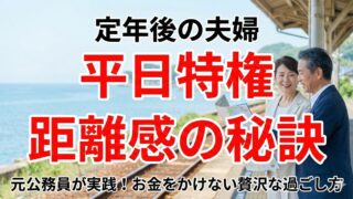 定年後の夫婦生活、息苦しくありませんか?元公務員が教える、再雇用に頼らない「平日旅行」や「お金のかからない趣味」の活用術。適度な距離感と「自分年金」で、妻の不安を解消し、円満なセカンドライフを送るための具体的な戦略を公開します。